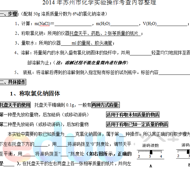 【查看原帖并参与讨论:2014年苏州市化学实验操作考查内容整理】