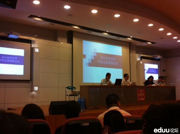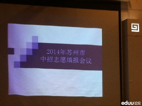 今天下午两点在苏州市十中举行了苏州各初中学校初三班主任会议,介绍关于2014年中招志愿填报工作的相关事宜,基教处董处长、曹主任分别给老师们作2014年苏州中招政策解读、网上志愿填报说明及具体安排。