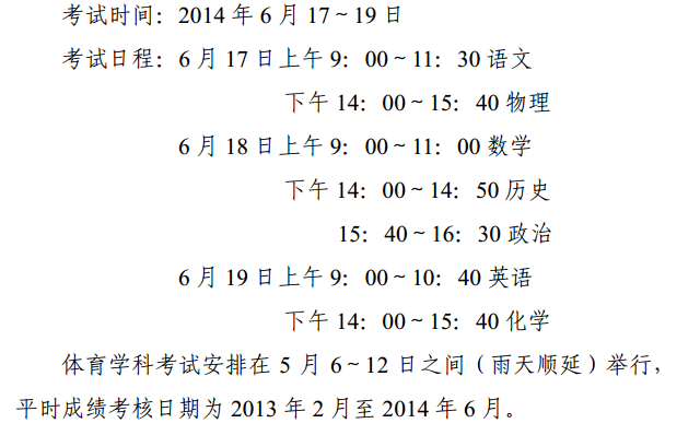 2014吴中区中考时间与具体科目安排(官方版)