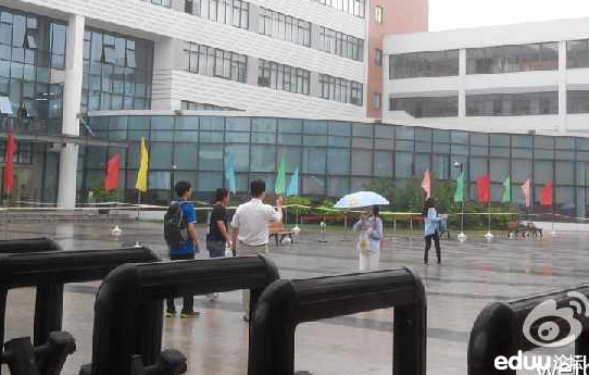 来自振华考点:老人是来送孙子的。顺便拍照留念。一直在各种拍。雨已经很大了