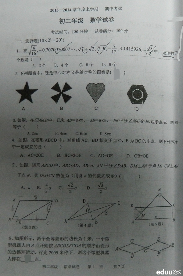沈阳中考网:2013年沈阳市43中学初二上期中数学试题,试题图片如下: