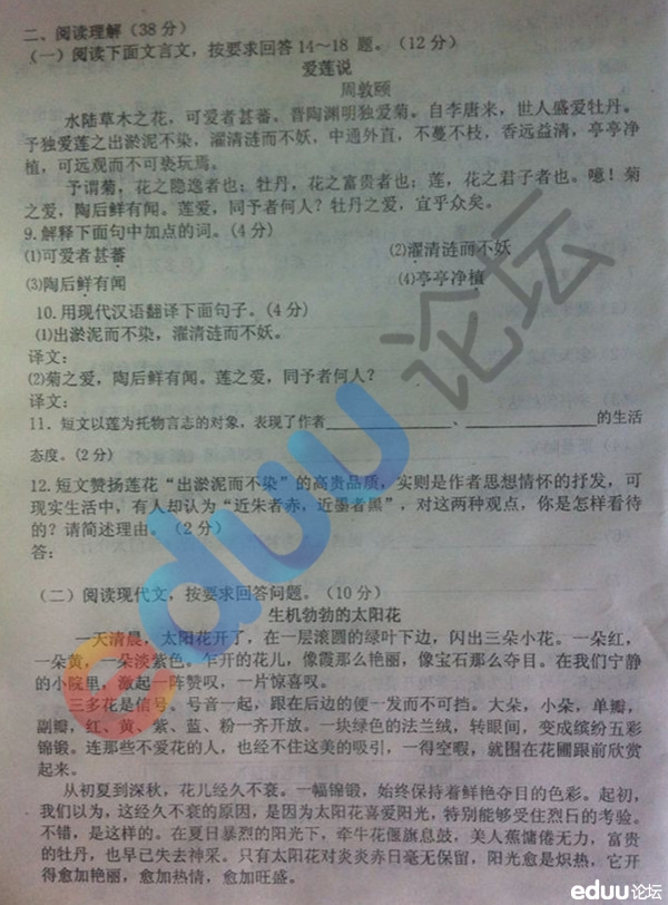 2013-2014学年沈阳市初一下月考语文试题(3)