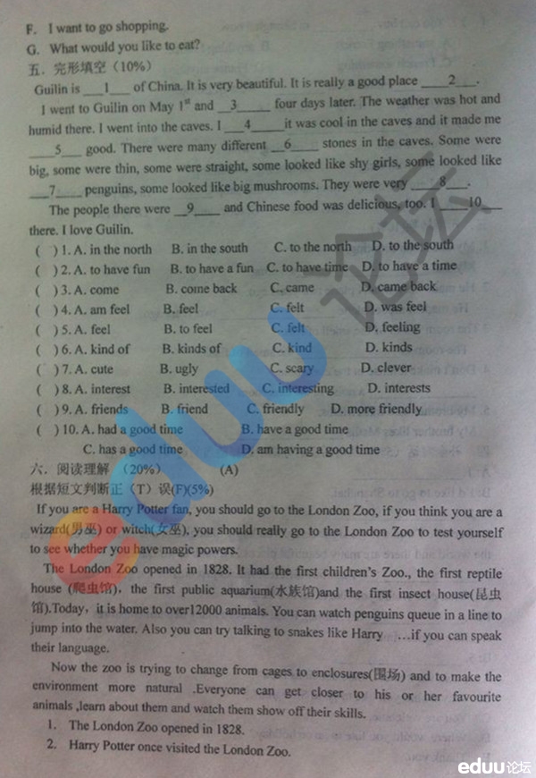 2013-2014学年沈阳市初一下月考英语试题(3) 2014-04-08 16:32:44文卿 相关推荐: 2013-2014学年沈阳市初一下月考数学试题 2013-2014学年沈阳市初一下月考语文试题 2013-2014学年沈阳市初一下月考历史试题 2013-2014学年沈阳市初一下月考地理试题 2013-2014学年沈阳市初一下月考生物试题 2013-2014学年沈阳市初一下月考思想品德试题 [查看原帖参与讨论]
