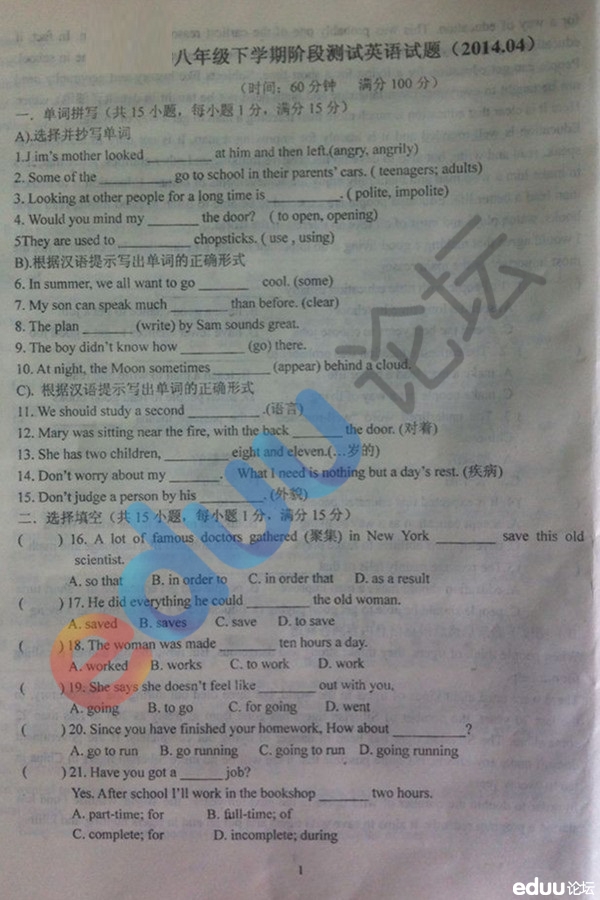 2013-2014学年沈阳市初二下月考英语试题 2014-04-10 11:13:19文卿 沈阳中考网:2013-2014学年沈阳市初二下月考英语试题。 编辑推荐: 2013-2014学年沈阳市初二下月考语文试题 2013-2014学年沈阳市初二下月考数学试题 2013-2014学年沈阳市初二下月考思想品德试题 2013-2014学年沈阳市初二下月考历史试题 2013-2014学年沈阳市初二下月考地理试题 2013-2014学年沈阳市初二下月考生物试题 2013-2014学年沈阳市初二下月考物理试题