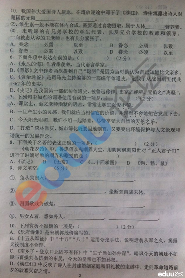 2013-2014学年沈阳市初二下月考语文试题(2) 2014-04-10 11:14:31文卿 编辑推荐: 2013-2014学年沈阳市初二下月考英语试题 2013-2014学年沈阳市初二下月考数学试题 2013-2014学年沈阳市初二下月考思想品德试题 2013-2014学年沈阳市初二下月考历史试题 2013-2014学年沈阳市初二下月考地理试题 2013-2014学年沈阳市初二下月考生物试题 2013-2014学年沈阳市初二下月考物理试题