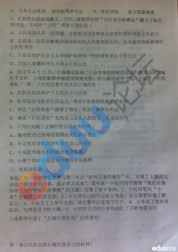 2013-2014学年沈阳市初二下月考思想品德试题(2) 2014-04-10 13:05:52文卿 [查看原帖参与讨论] 编辑推荐: 2013-2014学年沈阳市初二下月考英语试题 2013-2014学年沈阳市初二下月考语文试题 2013-2014学年沈阳市初二下月考数学试题 2013-2014学年沈阳市初二下月考历史试题 2013-2014学年沈阳市初二下月考地理试题 2013-2014学年沈阳市初二下月考生物试题 2013-2014学年沈阳市初二下月考物理试题