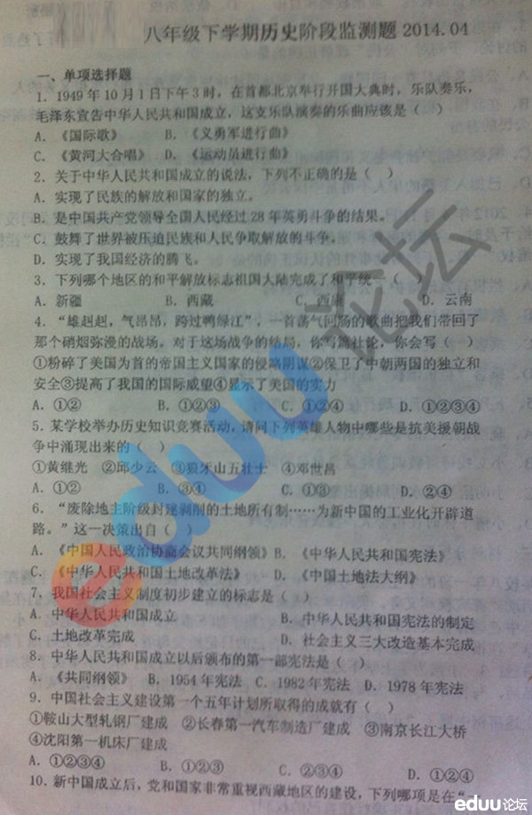 2013-2014学年沈阳市初二下月考历史试题 2014-04-10 13:06:38文卿 沈阳中考网:2013-2014学年沈阳市初二下月考历史试题。 编辑推荐: 2013-2014学年沈阳市初二下月考英语试题 2013-2014学年沈阳市初二下月考语文试题 2013-2014学年沈阳市初二下月考数学试题 2013-2014学年沈阳市初二下月考思想品德试题 2013-2014学年沈阳市初二下月考地理试题 2013-2014学年沈阳市初二下月考生物试题 2013-2014学年沈阳市初二下月考物理试题