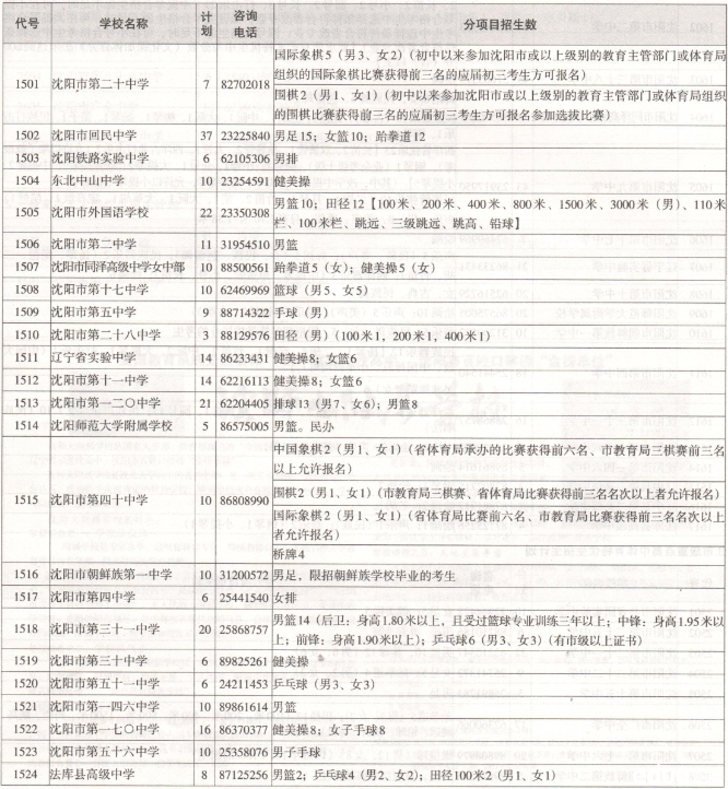 沈阳中考网:2014年沈阳中考省重点高中(含省级示范学校和同批次录取学校)体育特优生招生计划
