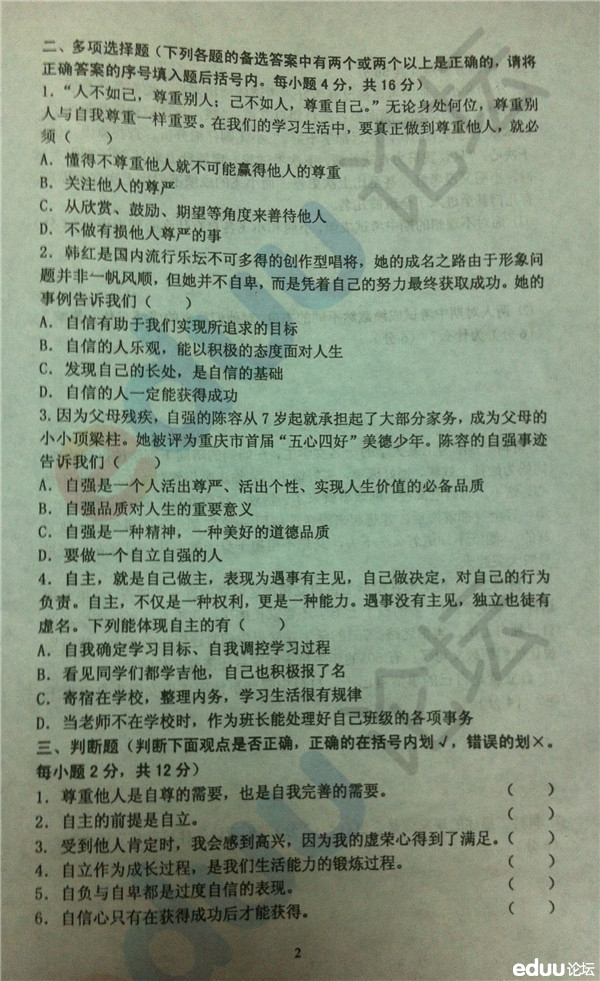 2014年5月沈阳铁西七年级月考思想品德试题及参考答案(2) 2014-05-20 10:19:54文卿 编辑推荐: 2014年5月沈阳铁西七年级月考数学试题及参考答案 2014年5月沈阳铁西七年级月考语文试题及参考答案 2014年5月沈阳铁西七年级月考英语试题 2014年5月沈阳铁西七年级月考生物试题及参考答案 2014年5月沈阳铁西七年级月考地理试题 2014年5月沈阳铁西七年级月考历史试题及参考答案