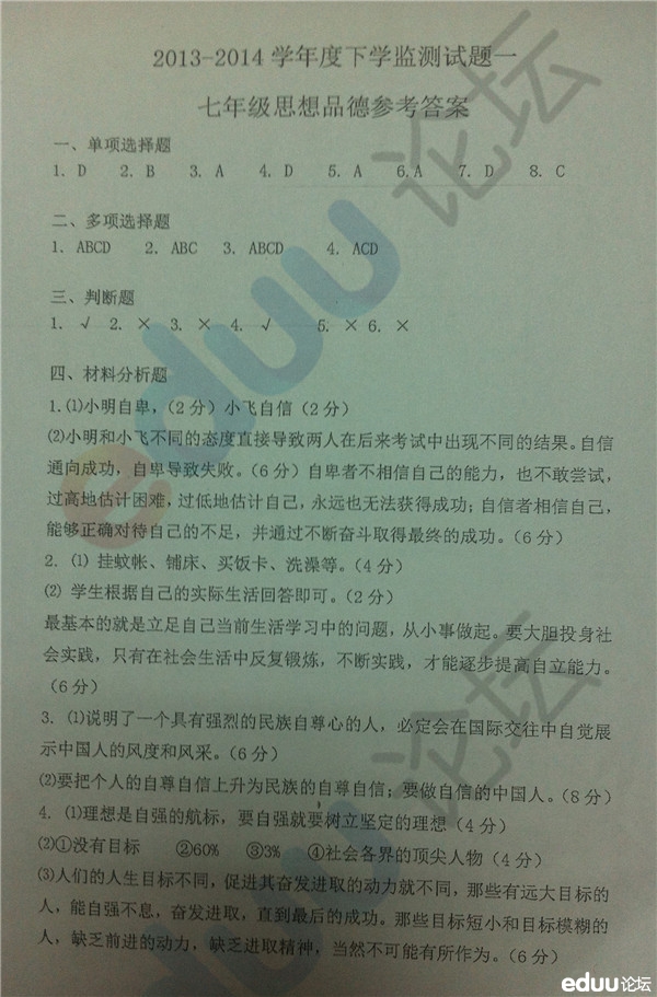 2014年5月沈阳铁西七年级月考思想品德试题及参考答案(5) 2014-05-20 10:19:54文卿 【查看原帖并参与讨论:2014年5月沈阳铁西七年级月考思想品德试题及参考答案】 编辑推荐: 2014年5月沈阳铁西七年级月考数学试题及参考答案 2014年5月沈阳铁西七年级月考语文试题及参考答案 2014年5月沈阳铁西七年级月考英语试题 2014年5月沈阳铁西七年级月考生物试题及参考答案 2014年5月沈阳铁西七年级月考地理试题 2014年5月沈阳铁西七年级月考历史试题及参考答案