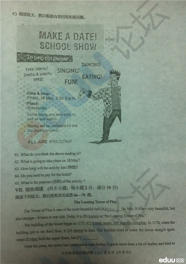 2014年5月沈阳铁西七年级月考英语试题(6) 2014-05-20 10:33:23文卿 编辑推荐: 2014年5月沈阳铁西七年级月考数学试题及参考答案 2014年5月沈阳铁西七年级月考语文试题及参考答案 2014年5月沈阳铁西七年级月考生物试题及参考答案 2014年5月沈阳铁西七年级月考地理试题 2014年5月沈阳铁西七年级月考历史试题及参考答案 2014年5月沈阳铁西七年级月考思想品德试题及参考答案