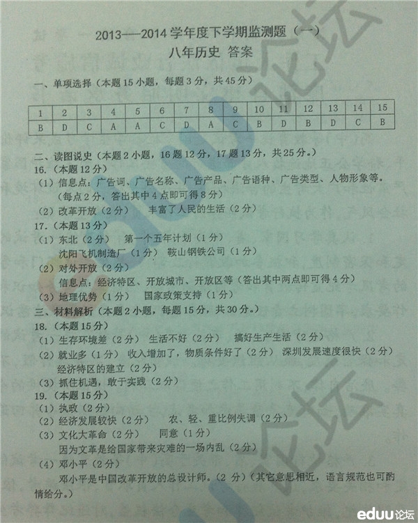2014年5月沈阳铁西八年级月考历史试题及参考答案(5) 2014-05-26 16:01:16文卿 【查看原帖并参与讨论:2014年5月沈阳铁西八年级月考历史试题及参考答案】 编辑推荐: 2014年5月沈阳铁西八年级月考数学试题及参考答案 2014年5月沈阳铁西八年级月考语文试题及参考答案 2014年5月沈阳铁西八年级月考英语试题及参考答案 2014年5月沈阳铁西八年级月考物理试题及参考答案 2014年5月沈阳铁西八年级月考生物试题及参考答案 2014年5月沈阳铁西八年级月考地理试题及参考答案 2014年5月沈阳铁西八年级月考思想品德试题及参考答案