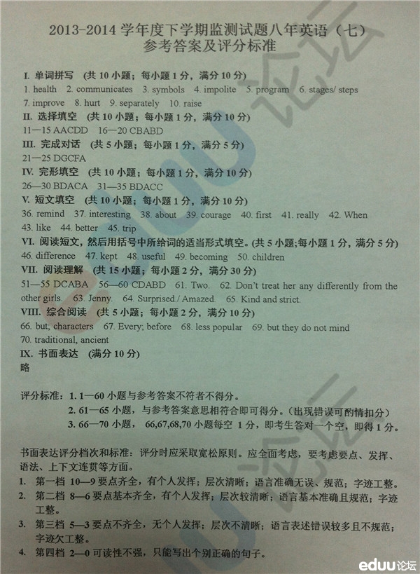 2014年5月沈阳铁西八年级月考英语试题及参考答案(8) 2014-05-26 16:22:21文卿 【查看原帖并参与讨论:2014年5月沈阳铁西八年级月考英语试题及参考答案】 编辑推荐: 2014年5月沈阳铁西八年级月考数学试题及参考答案 2014年5月沈阳铁西八年级月考语文试题及参考答案 2014年5月沈阳铁西八年级月考物理试题及参考答案 2014年5月沈阳铁西八年级月考生物试题及参考答案 2014年5月沈阳铁西八年级月考地理试题及参考答案 2014年5月沈阳铁西八年级月考历史试题及参考答案 2014年5月沈阳铁西八年级月考思想品德试题及参考答案