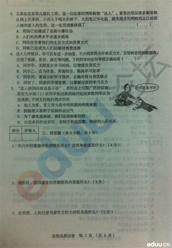 2014年沈阳市初中毕业考试思想品德试题(3)