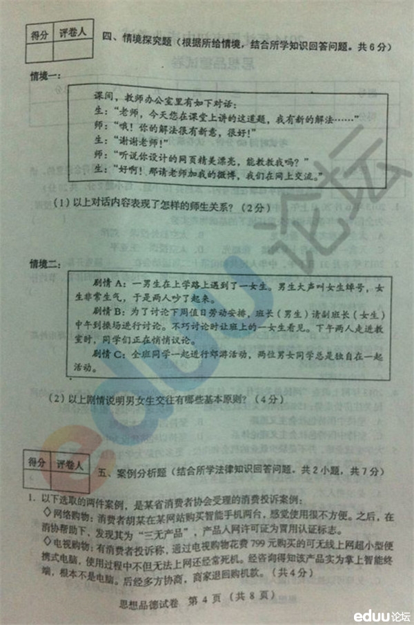 2014年沈阳市初中毕业考试思想品德试题(4)