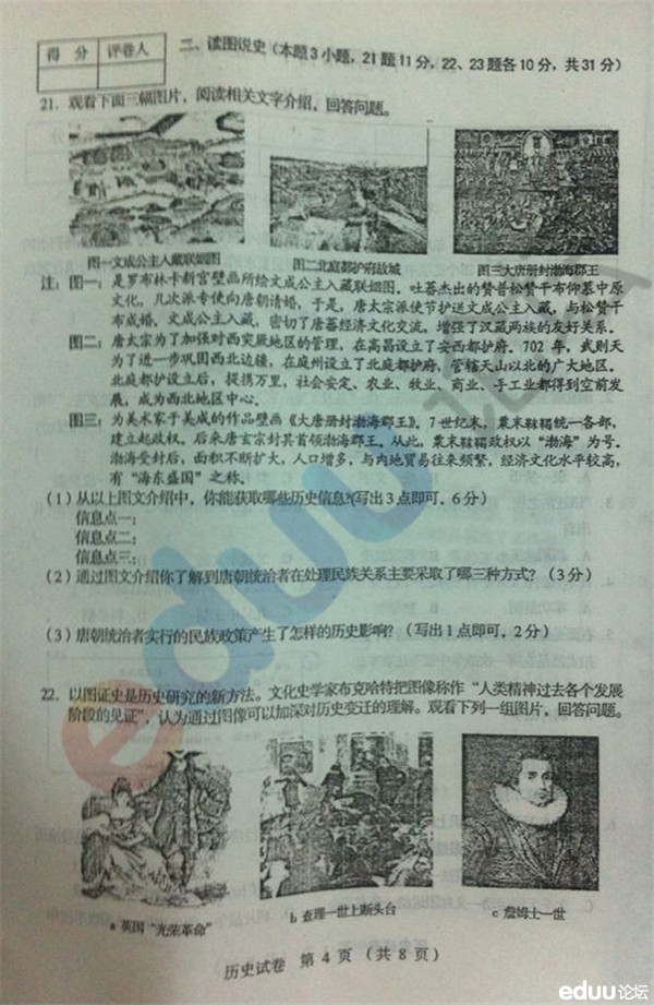 2014年沈阳市初中毕业考试历史试题(4)