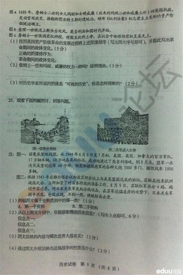 2014年沈阳市初中毕业考试历史试题(5)