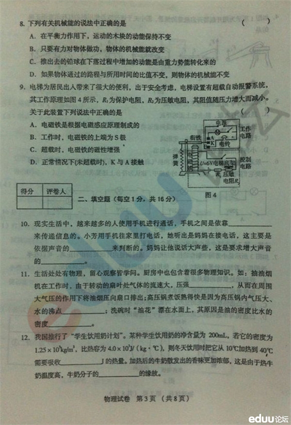 2014年沈阳市初中毕业考试物理试题(3)