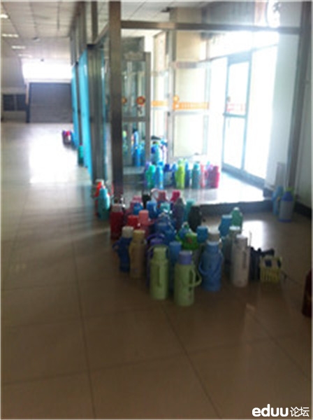 食堂门口还摆着很多学生的水壶,真的和大学很像了~