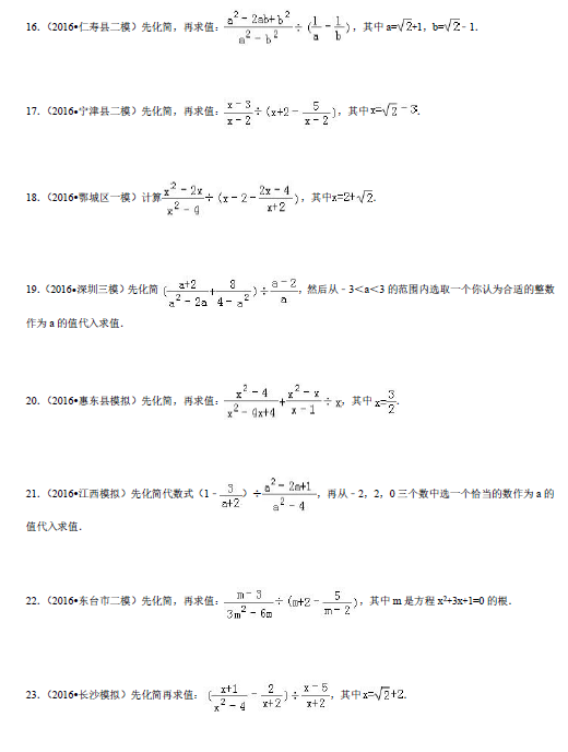 2017年沈阳中考数学分式化简练习题(二)(3)