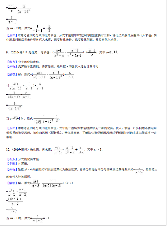 2017年沈阳中考数学分式化简练习题解析(二)(4)