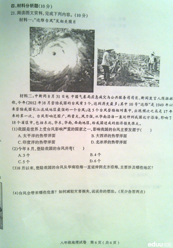 太原市2012-2013学年八年级上册地理期中试题(6)