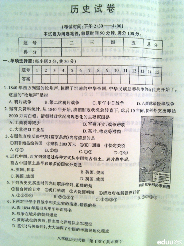 太原中考网:太原市2012-2013学年八年级上册历史期中试题: