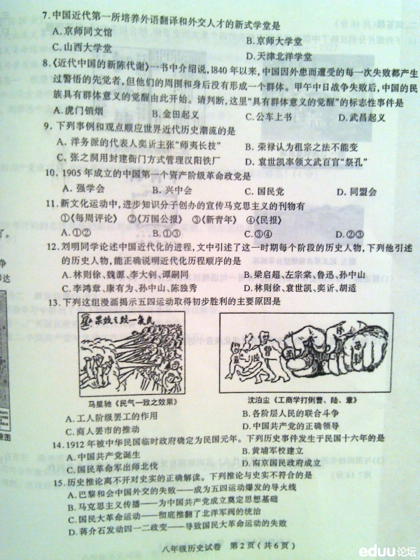太原市2012-2013学年八年级上册历史期中试题(2)