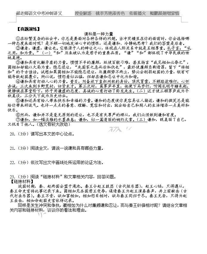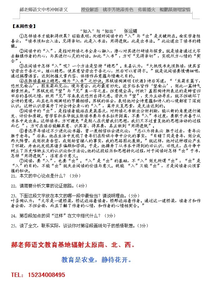 2014山西中考语文冲刺讲义之议论文阅读 2014-03-10 17:56:14haoym 2014山西中考语文冲刺讲义之议论文阅读 [查看原帖参与讨论] 推荐阅读: 2014年语文中考科目说明解读 2014年初中毕业班练兵考试时间(太原市一模、二模、三模)