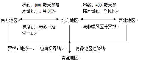 1.我国可以划分为青藏地区、西北地区、北方地区和南方地区。划分依据:地理位置、自然条件、经济发展水平。