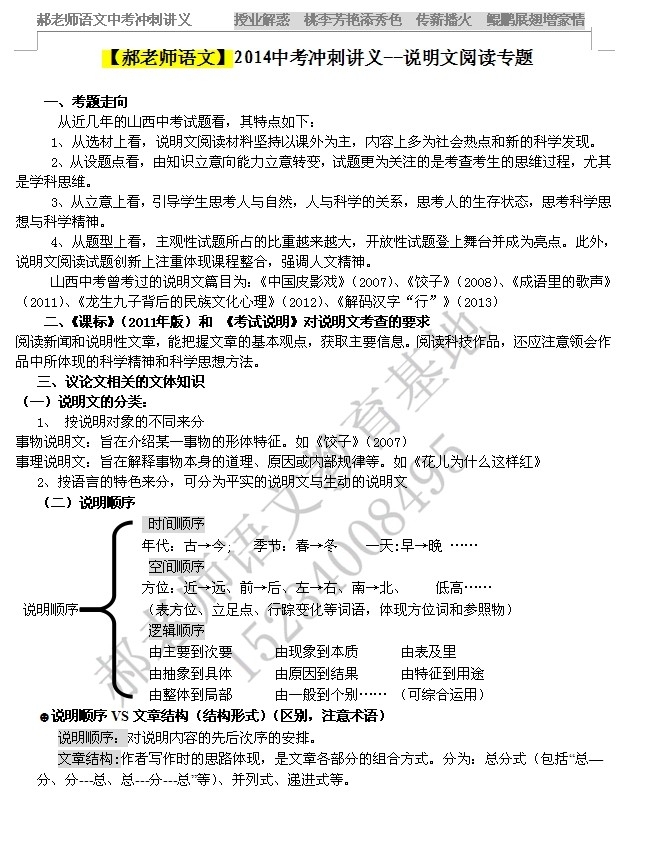2014山西中考语文冲刺讲义之说明文阅读(2)
