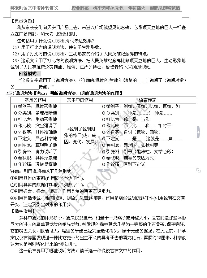 2014山西中考语文冲刺讲义之说明文阅读(3)