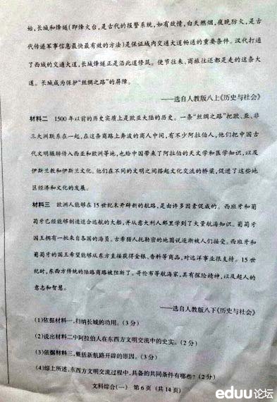 2014山西中考模拟百校联考一文综试题及答案(7)