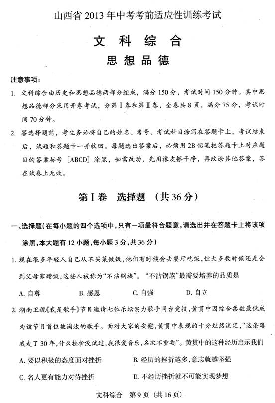 2013年山西省适应考试文综(思想品德)试卷 2014-03-27 10:44:08小百货007 2013年山西省适应考试文综(思想品德)试卷 推荐阅读: 2013年山西省适应考试题及答案汇总 2013年山西省适应考文综答案 [查看原帖参与讨论]