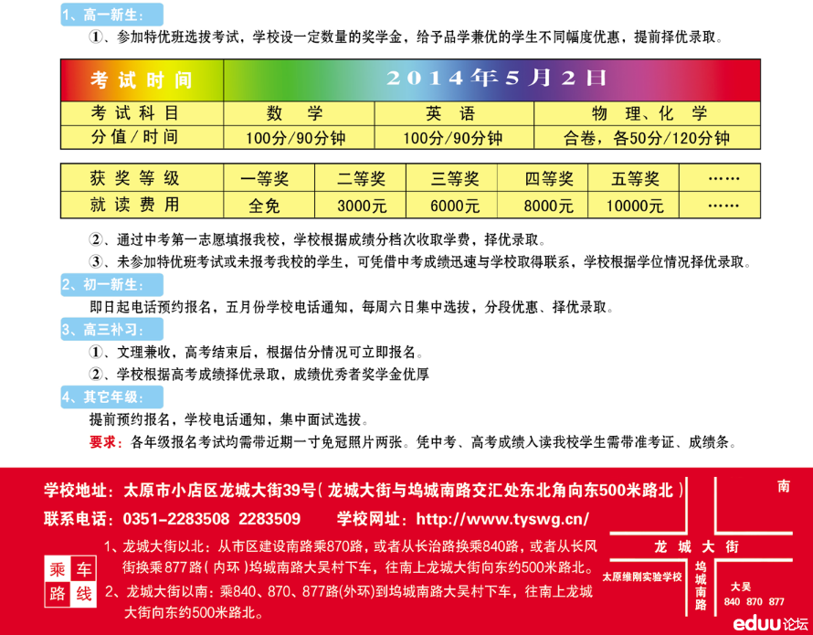 2014太原维刚实验学校高一特优班选拔报名中