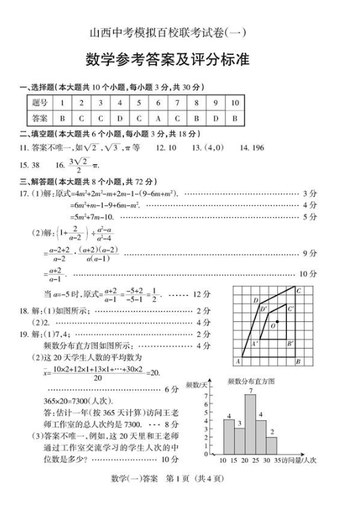 2014年“山西中考模拟百校联考一”数学试题答案