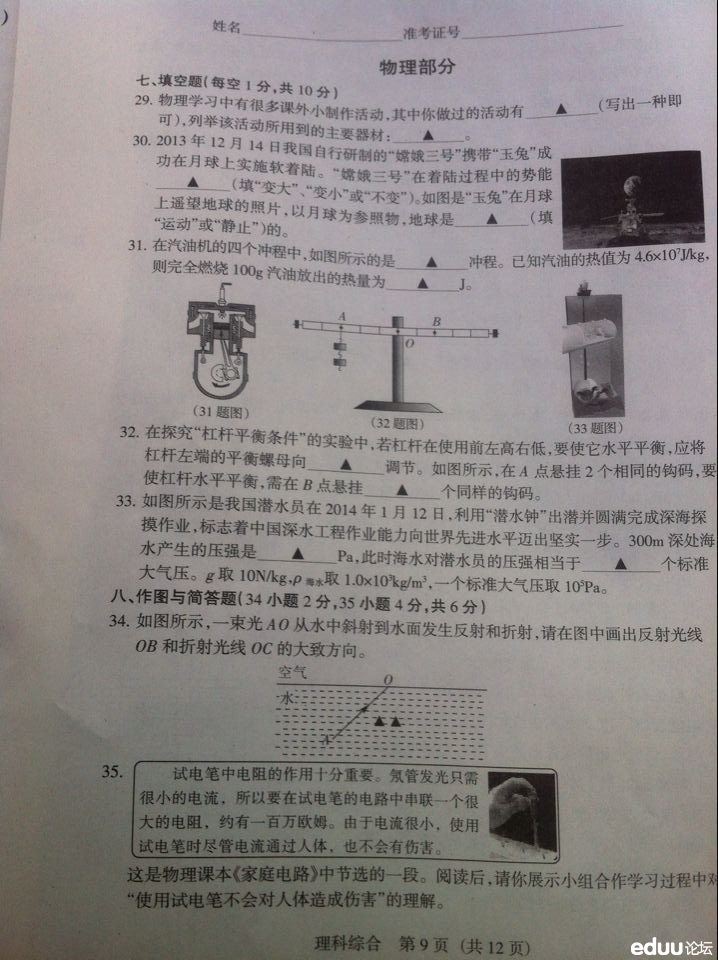 山西省2014年中考考前适应性训练理综(物理)试题(3)