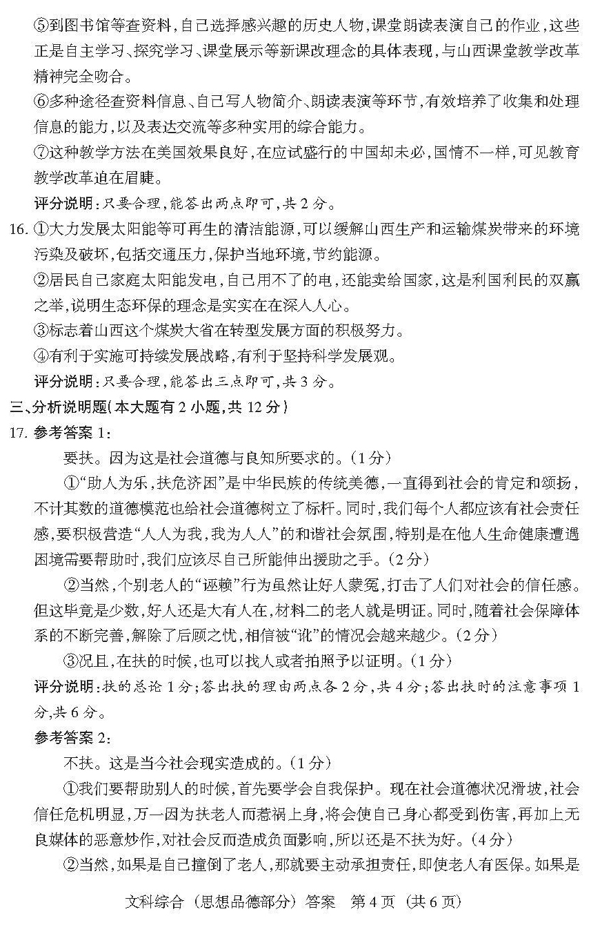 山西省2014年中考考前适应性训练文综(思想品德)试题答案(2)