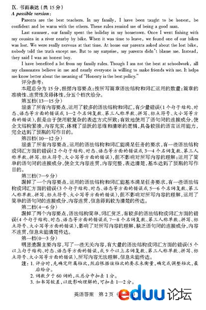 山西省2014年中考考前适应性训练英语试题答案(2)