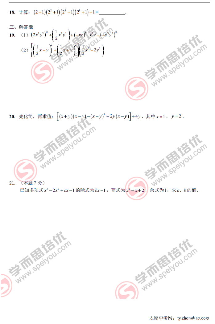 太原2013-2014初一下学期数学期中考试模拟题(3)