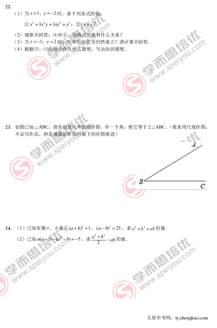 太原2013-2014初一下学期数学期中考试模拟题(4)