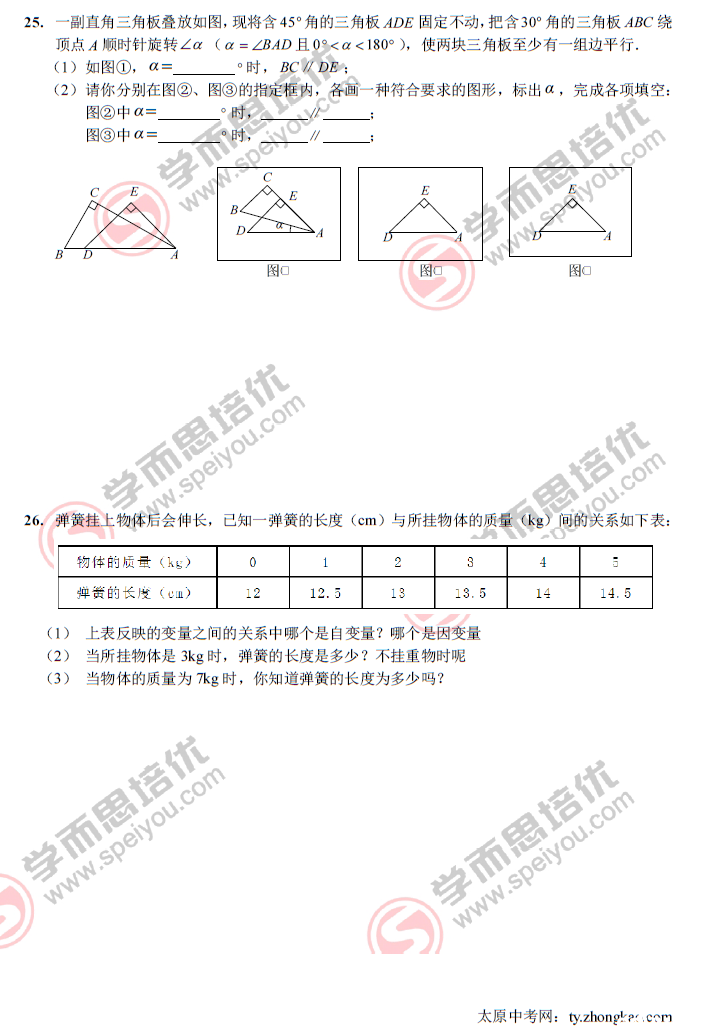 太原2013-2014初一下学期数学期中考试模拟题解析