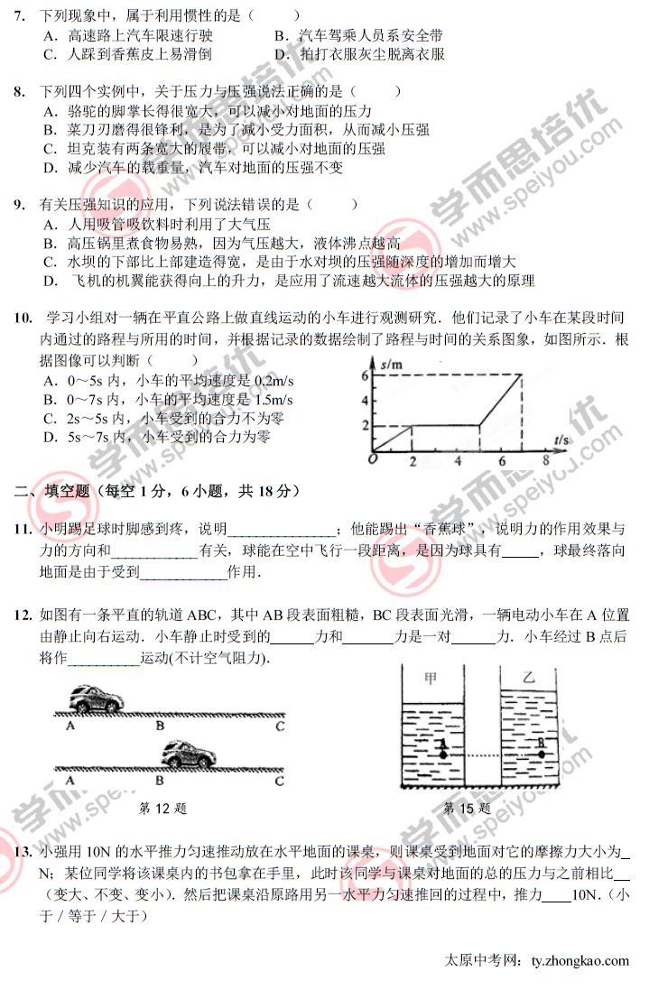 太原2013-2014初二下学期物理期中考试模拟题(2) 2014-04-18 10:32:01手掌心 编辑推荐 太原2013-2014初二下学期物理期中考试模拟题解析 太原市2013-2014初二下学期数学期中考试模拟题 太原2013-2014初二下学期数学期中考试模拟题解析