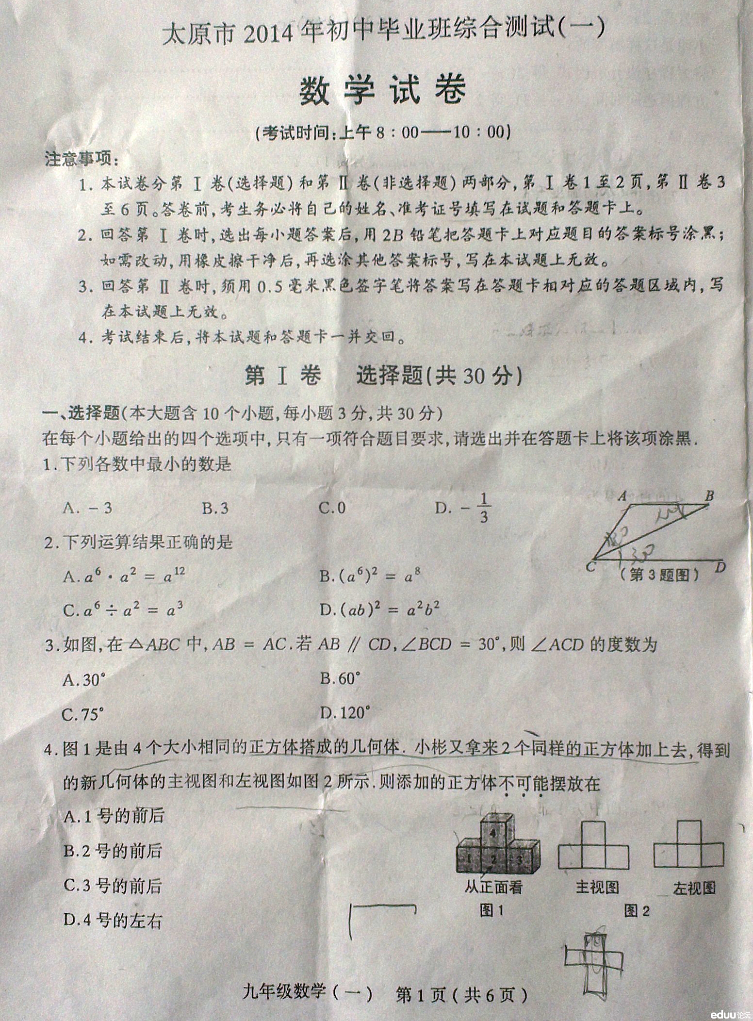 太原市2014年初中毕业班综合测试一数学试题 2014-04-23 16:45:24手掌心 太原市2014年初中毕业班综合测试一数学试题 编辑推荐: 太原市2014年初中毕业班综合测试(一)数学答案 太原市2014初中毕业班综合测试(一)英语 太原市2014年初中毕业班综合测试(一)语文 太原市2014年初中毕业班综合测试(一)物理