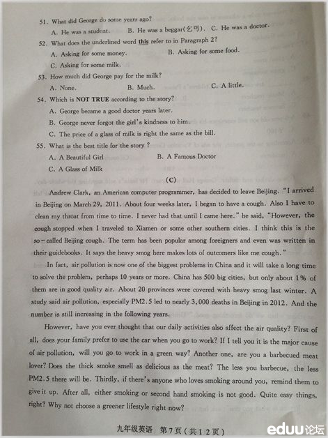 太原市2014初中毕业班综合测试(一)英语(7) 2014-04-23 16:54:13遇见2014 编辑推荐: 太原市2014年初中毕业班综合测试一数学试题 太原市2014年初中毕业班综合测试(一)数学答案 太原市2014年初中毕业班综合测试(一)语文 太原市2014年初中毕业班综合测试(一)物理