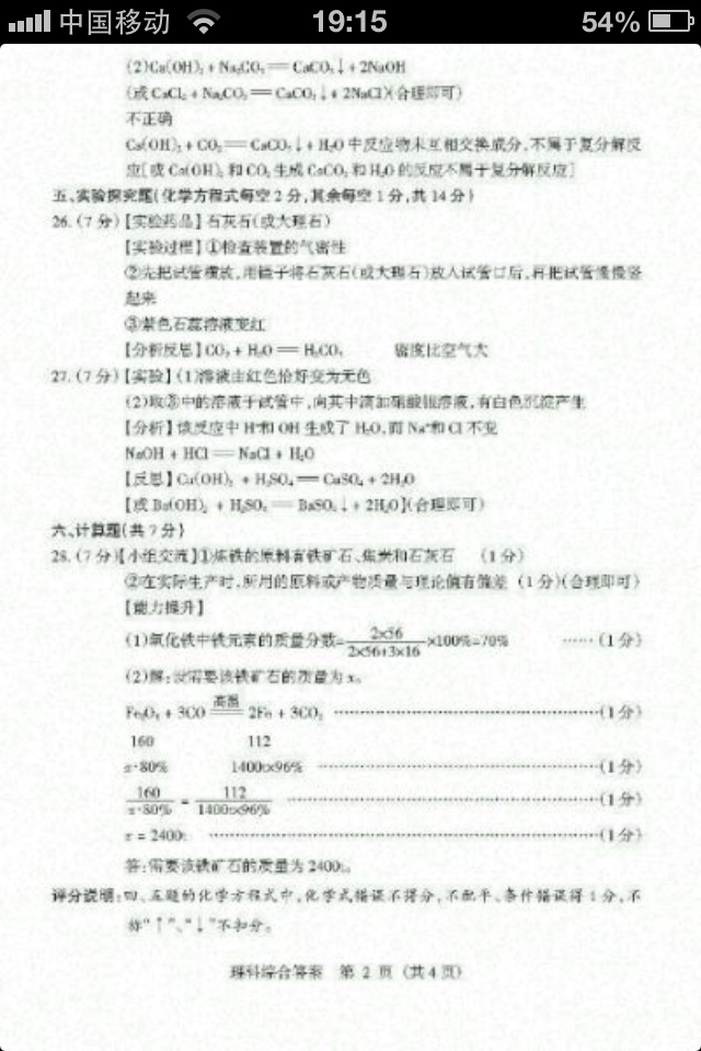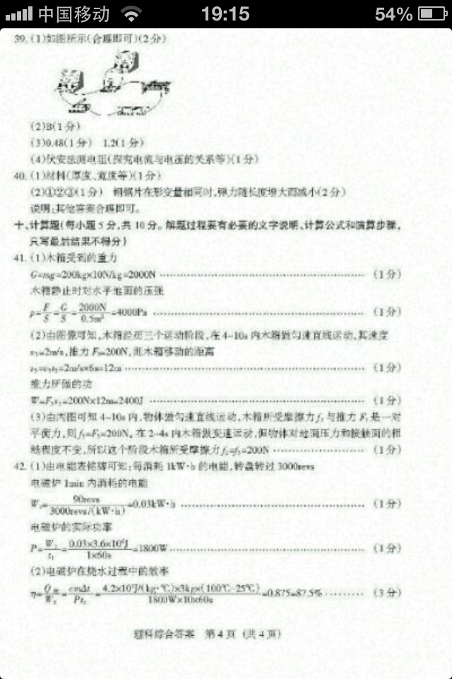 山西省2014年中考考前适应性训练理综(物理)试题答案