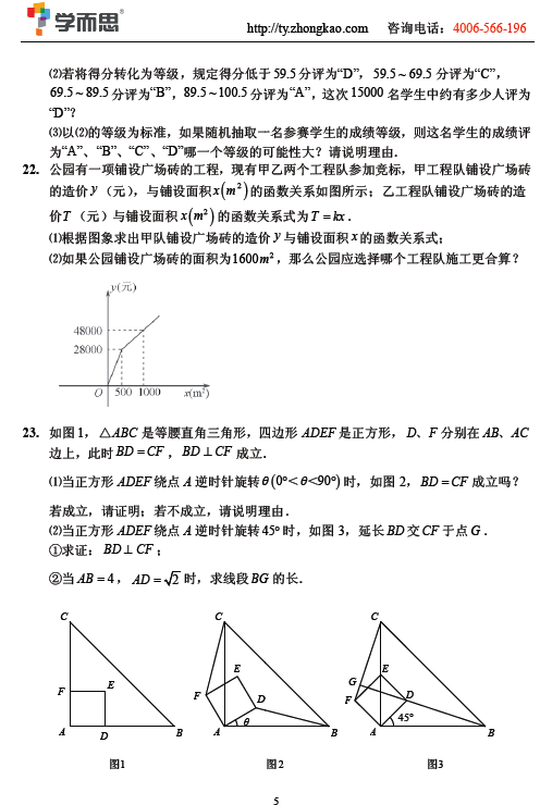 太原学而思新初三目标板选拔考试数学试卷(5)
