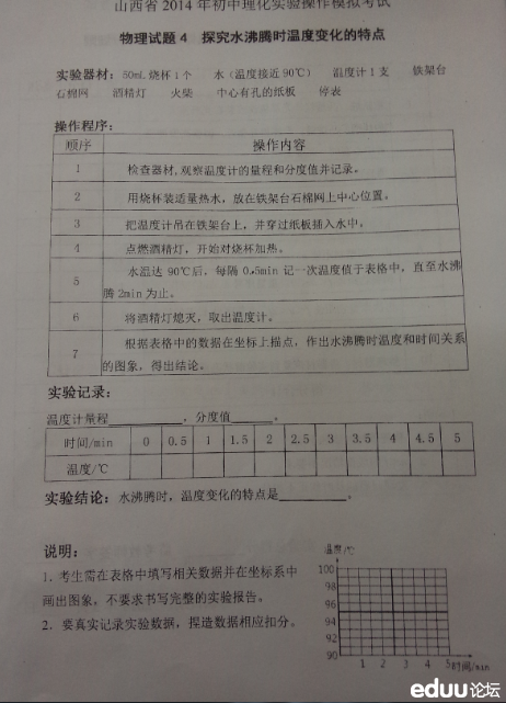 山西省2014年初中理化实验操作模拟考试题库(7)