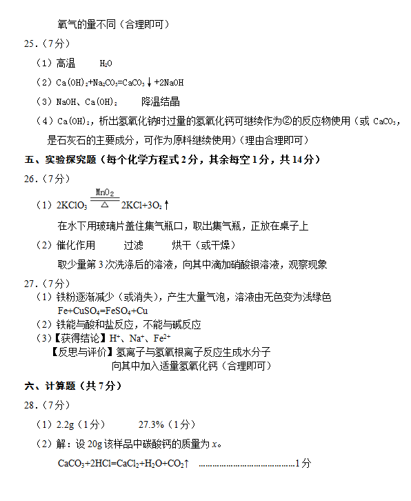 2014太原初中毕业班综合测试(二)理科综合(化学)参考答案(2)