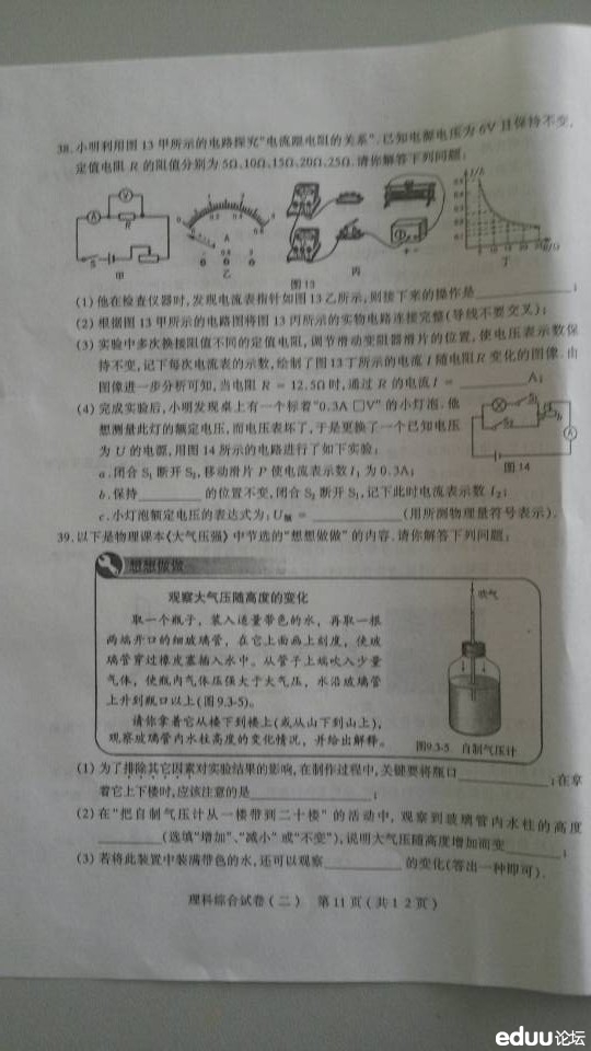 太原市2014年初中毕业班综合测试(二)理综试题(11)